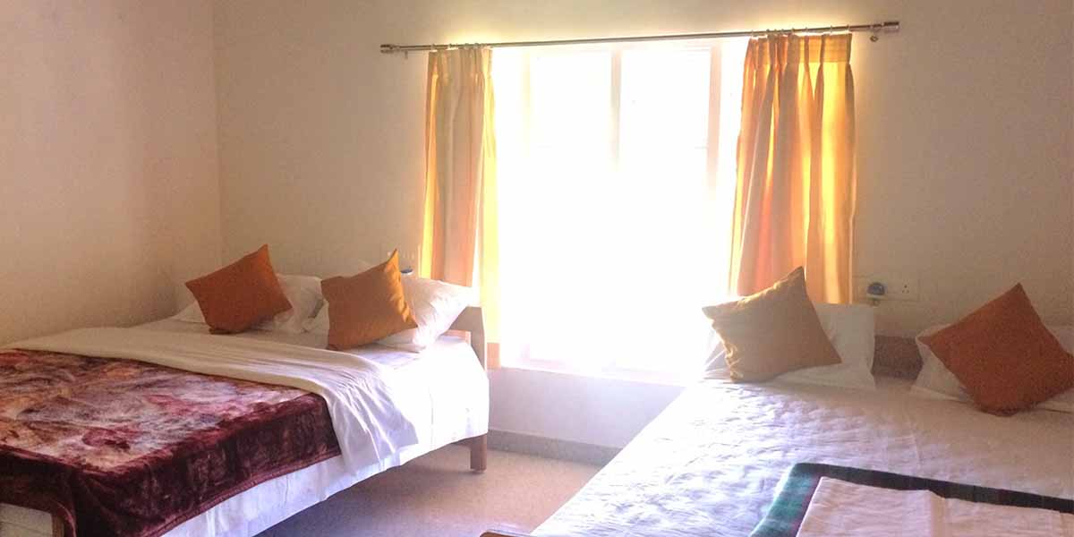 The cottages are designed for comfort and are scattered in the property. Each cottage is a Single bedroom with attached Rest room , furnished with two double cots comfortable for the family of four or a group of four.